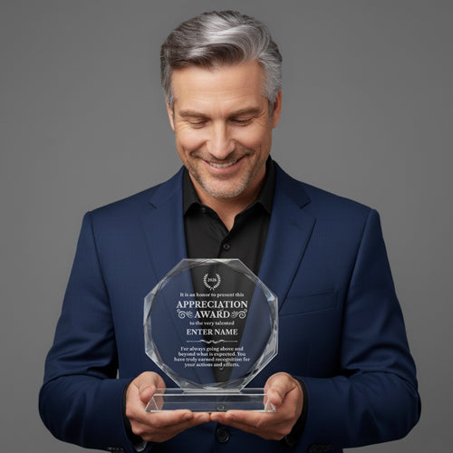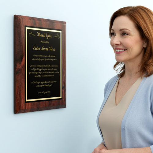 Discover our range of professionally pre-designed awards and plaques, created to make recognition fast, simple, and completely customizable. Whether you need retirement awards, long-service plaques, sales awards, thank-you gifts, or any other corporate recognition, each design is ready for you to personalize.