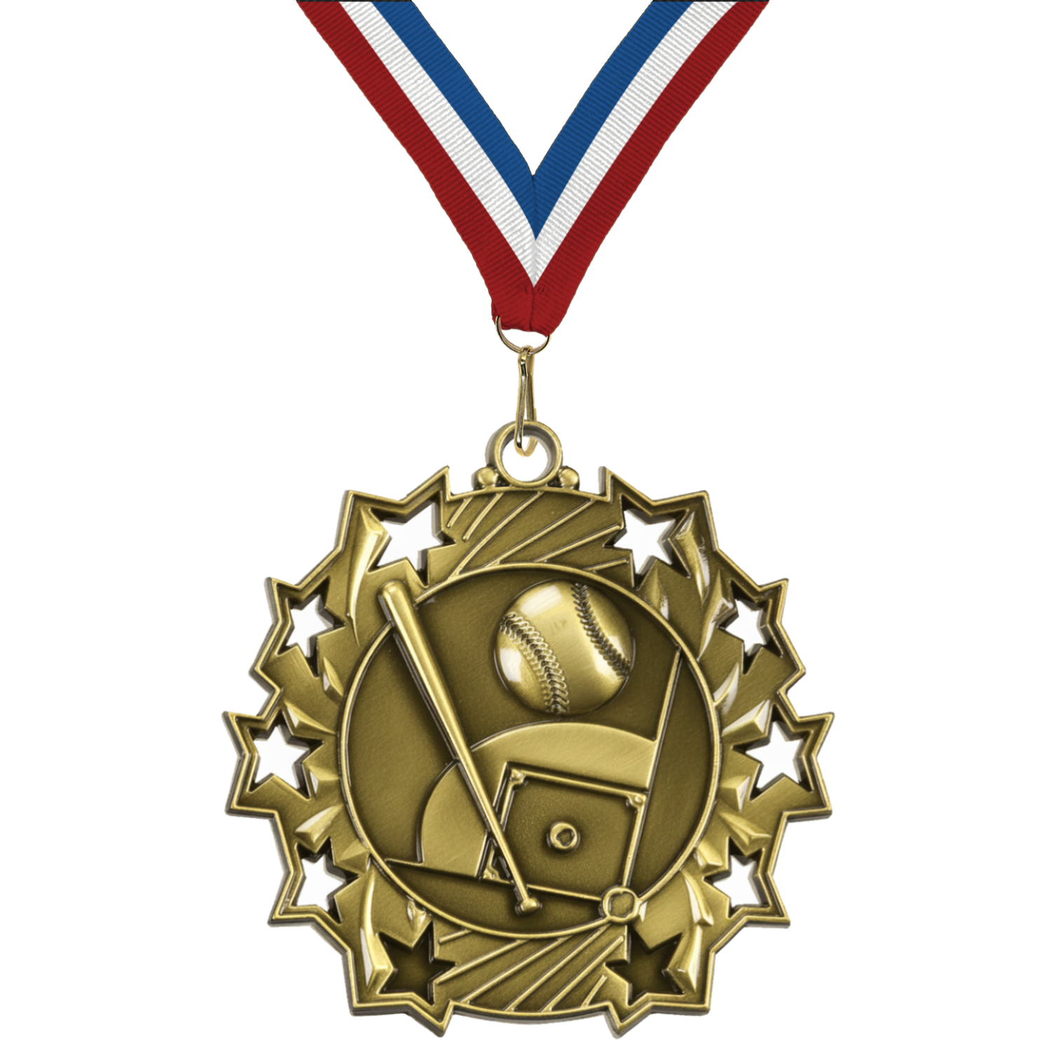 2.25" 10 Star Baseball Medal – Gold, Silver & Bronze with 30 Ribbon Options