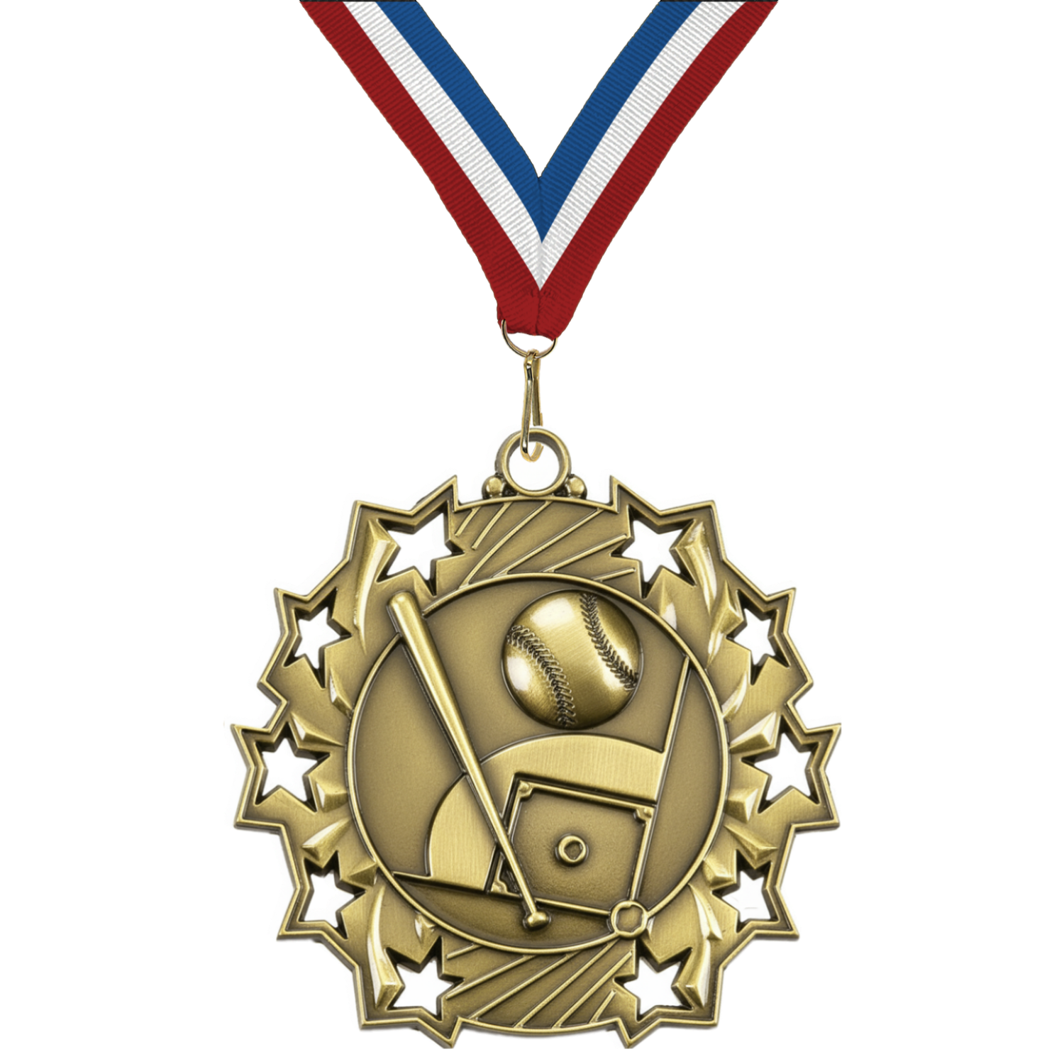 2.25" 10 Star Softball Medal – Gold, Silver & Bronze with 30 Ribbon Options