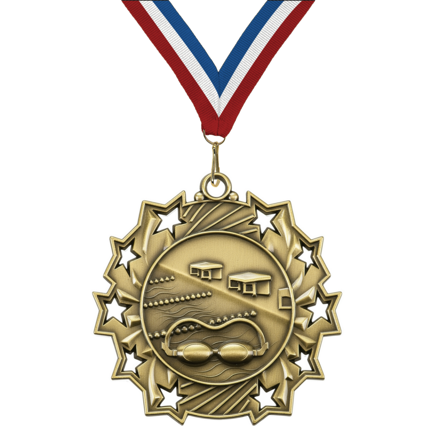 2.25" 10 Star Swimming Medal – Gold, Silver & Bronze with 30 Ribbon Options