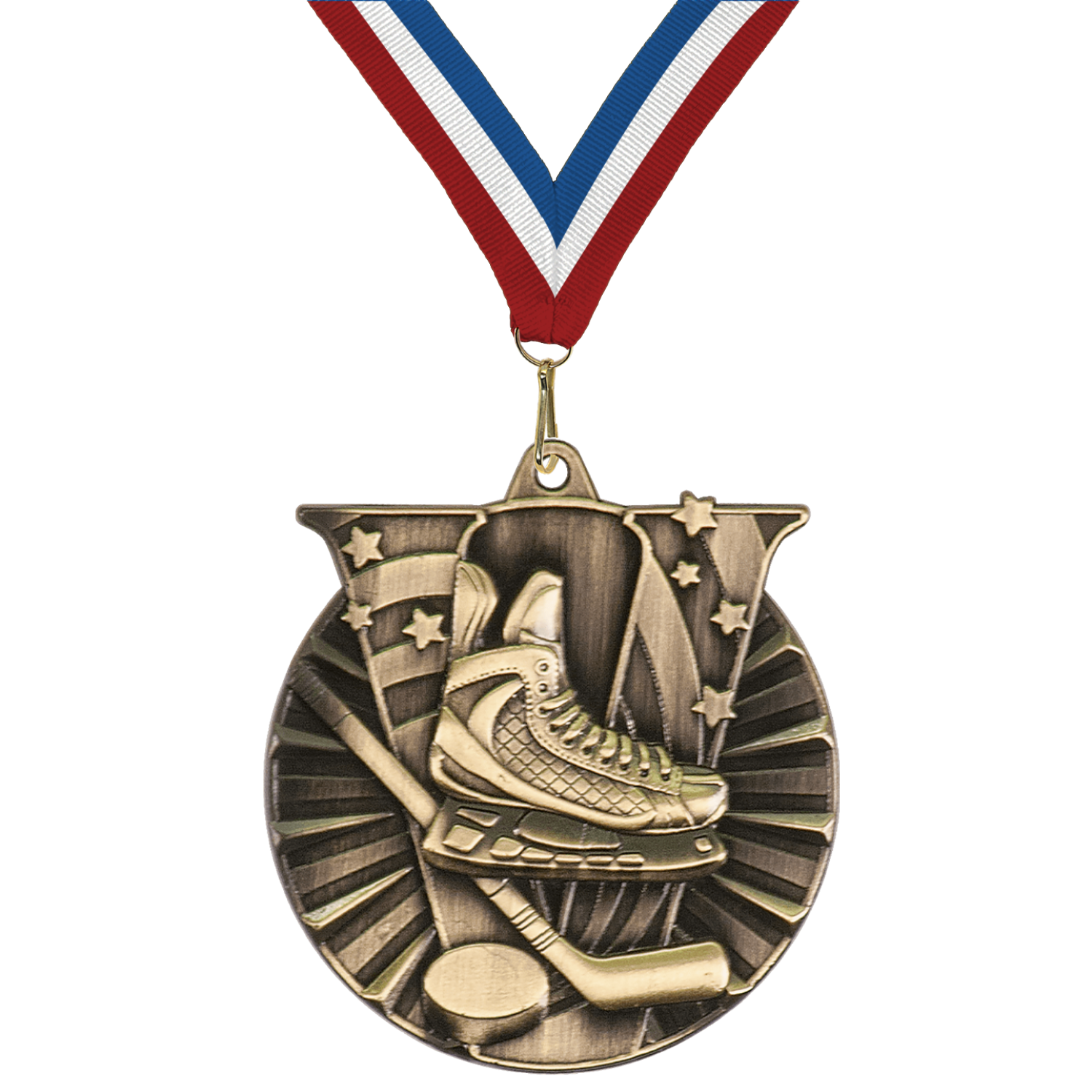 2" Victory Ice Hockey Medal – Gold, Silver & Bronze with Custom Ribbons in 30 Colors
