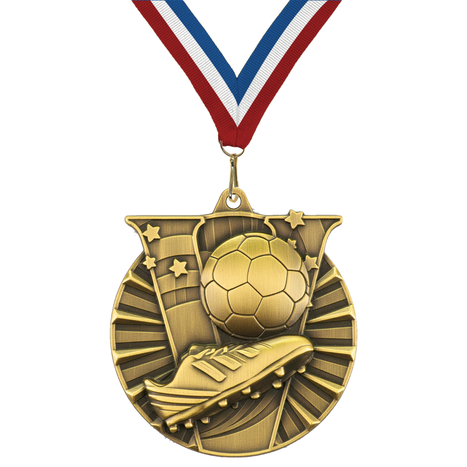 2" Victory Soccer Medal – Gold, Silver & Bronze with Custom Ribbons in 30 Colors