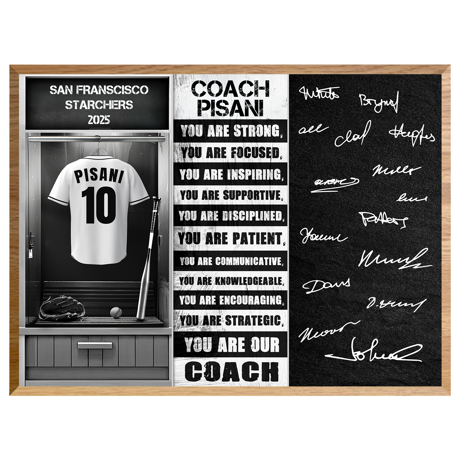 Each plaque is printed in full color on a durable wood-style background and includes a free marker pen for easy signing. It’s a thoughtful and lasting way to show appreciation for the coach who built the team and inspired every player.