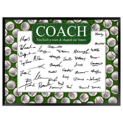 Say thank you to a great coach with this sport-specific Baseball Coach Signature Plaque. Each plaque features a bold full-color sports graphic matched to the sport, plus a smooth signing area so players can add their names and messages. It’s shipped blank and ready for the whole team to sign, and includes a marker pen for convenience.