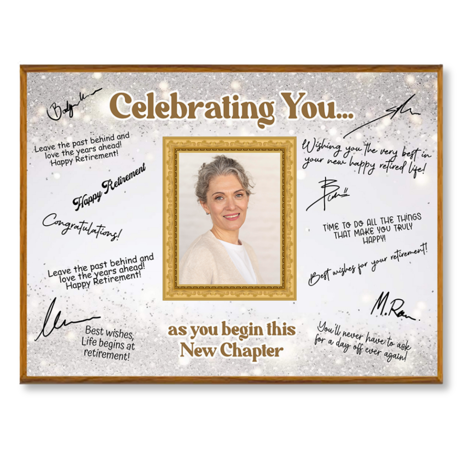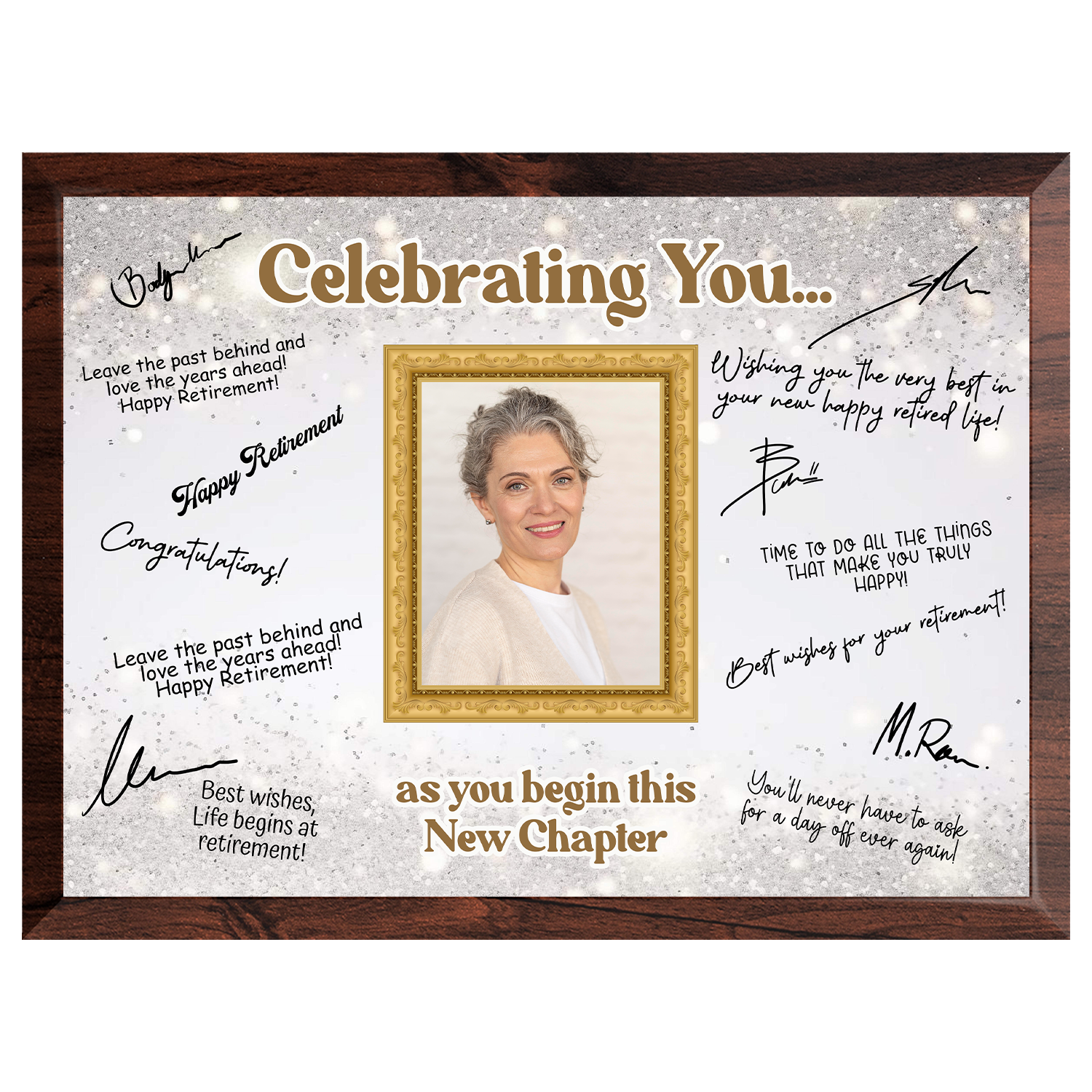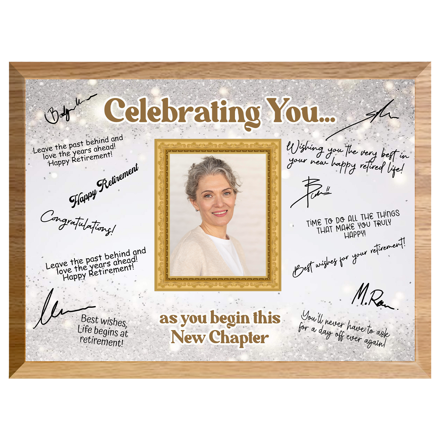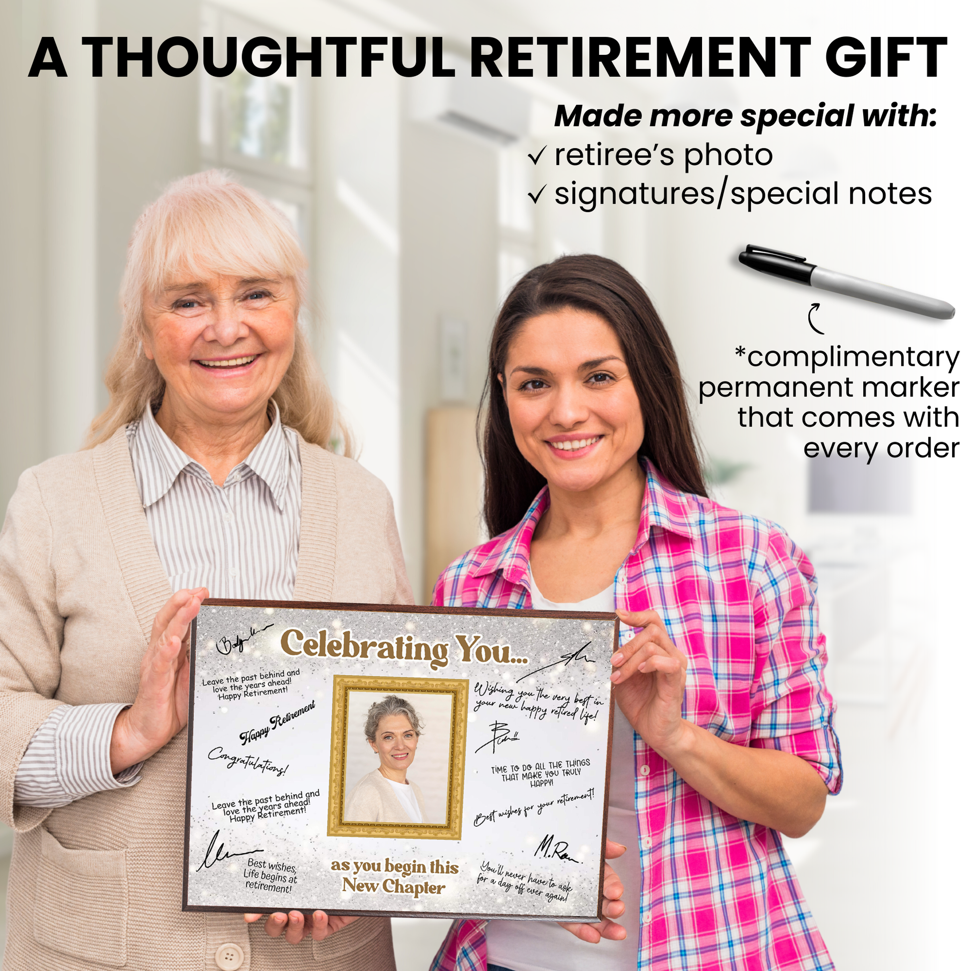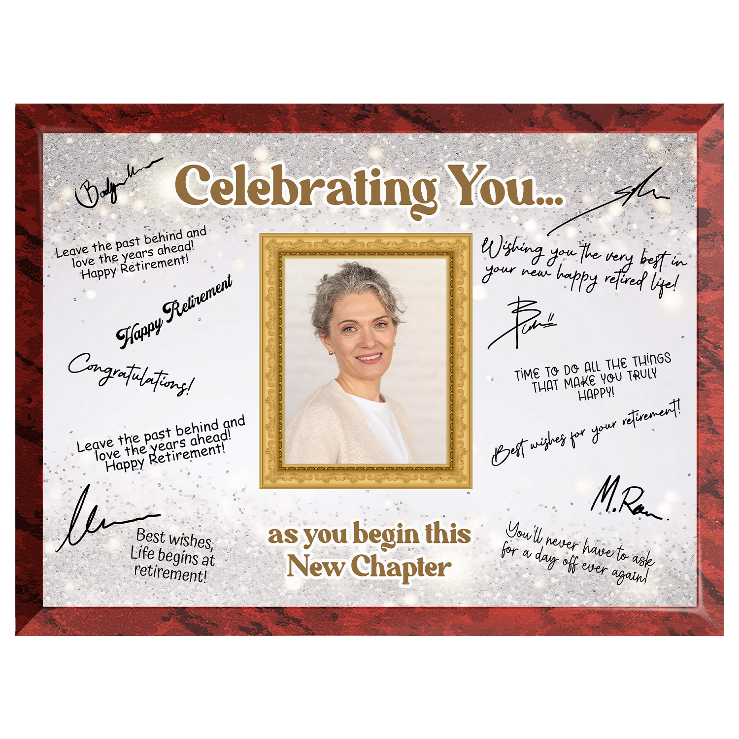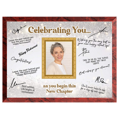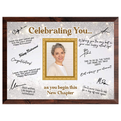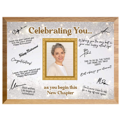 Featuring a full-color printed design and a customizable photo area, it’s ideal for displaying at retirement parties or as a lasting memento of their contributions. Each plaque includes a quality marker pen, ready for everyone to sign and personalize with meaningful messages.
