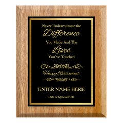Never Underestimate the Difference You Made Retirement Plaque – Personalized Award