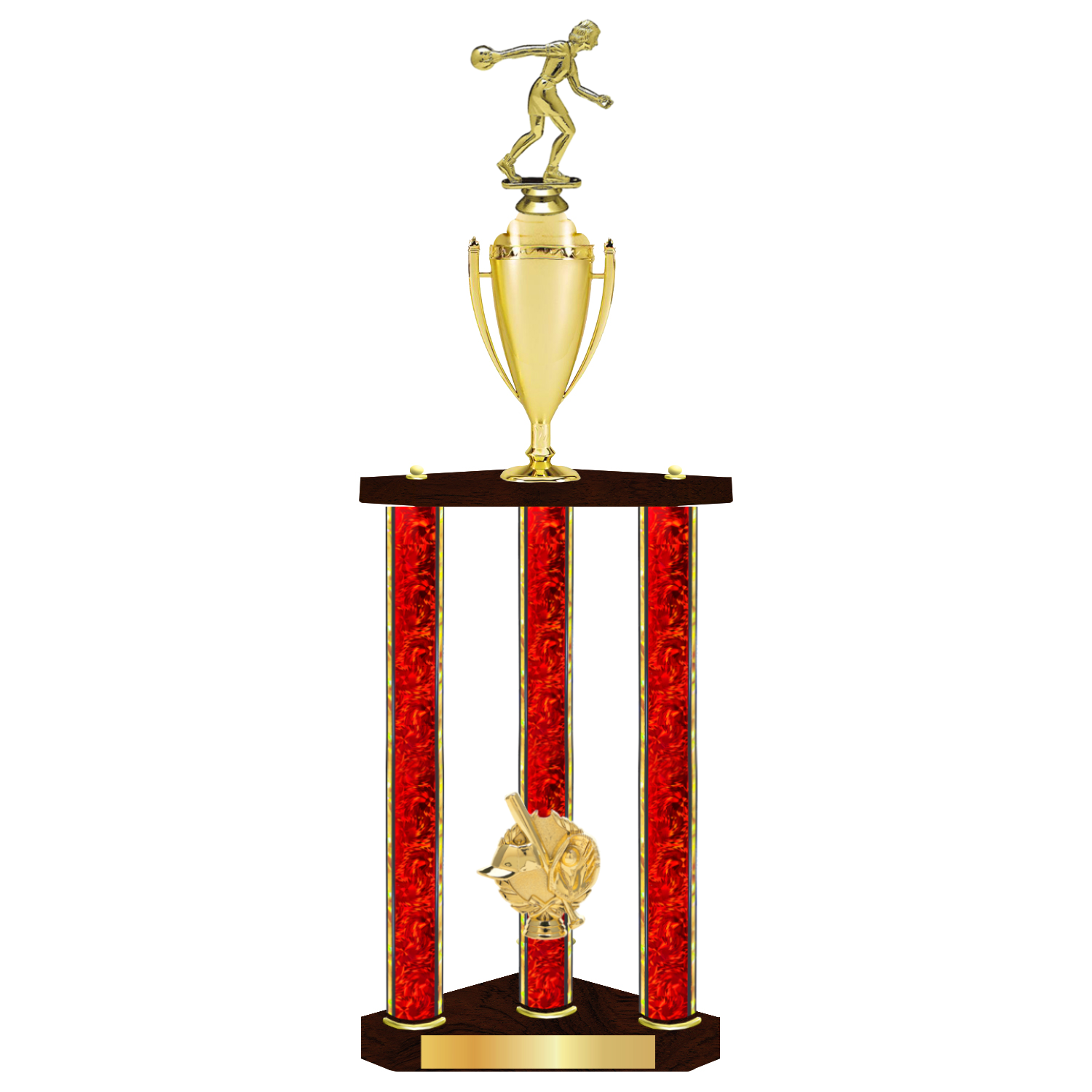 Personalised 3 Column Bowling Trophy / Award 32" – 36" Custom Figurines & Plate