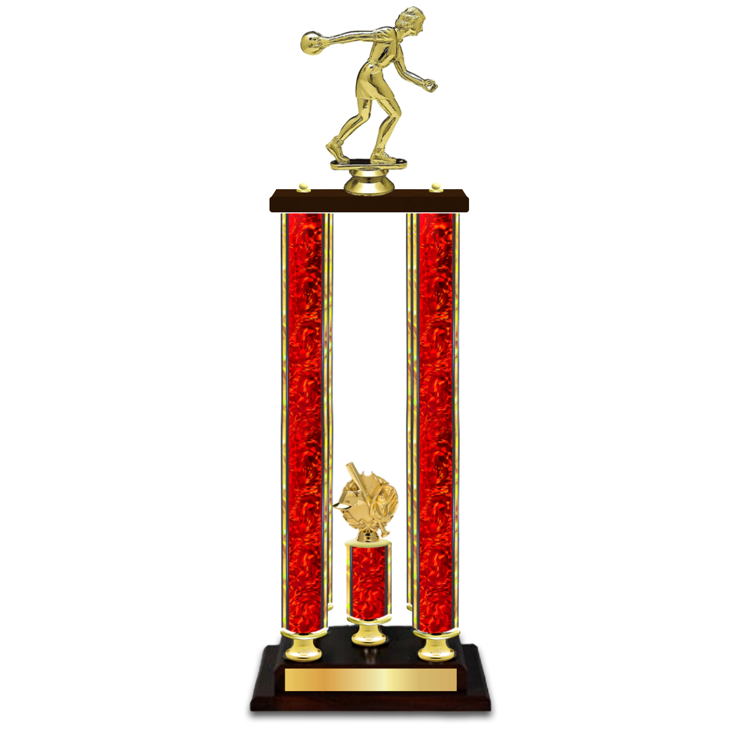 Personalised 4 Column Bowling Trophy / Award 34" – 38" Custom Figurines & Plate
