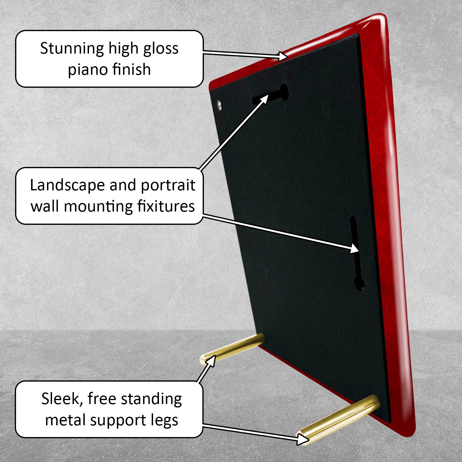 Each plaque includes a felt-lined back for added refinement and removable pins that allow for both portrait and landscape display. Available in two premium finishes Black Piano and Rosewood Piano this award is perfect for recognizing excellence, leadership, and dedication in any professional setting.