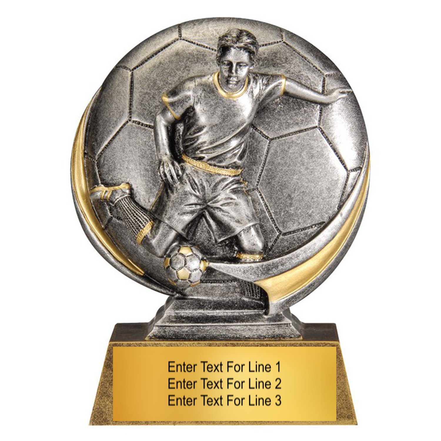 - Detailed 3D resin design with metallic finish