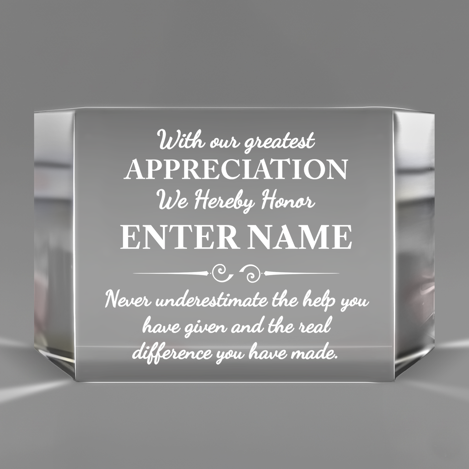 With Our Greatest Appreciation - Clear Crystal Glass Facet Rectangular Award